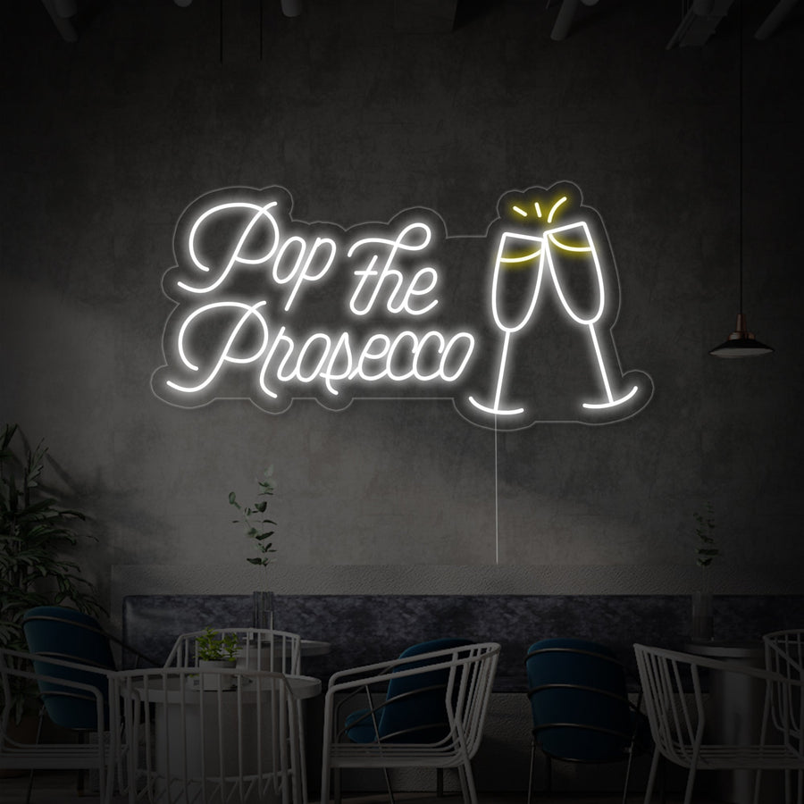 "Pop The Prosecco Olutbaari" Neonkyltti