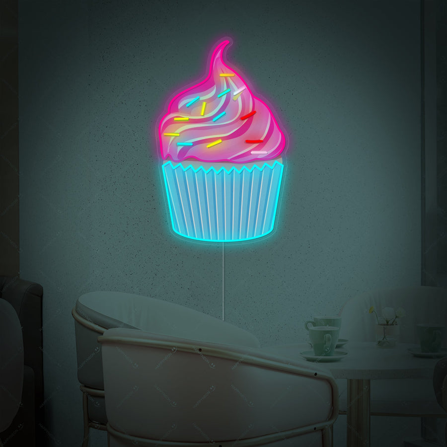 "Cupcake värikkäillä ripotteluilla" Neonkyltti
