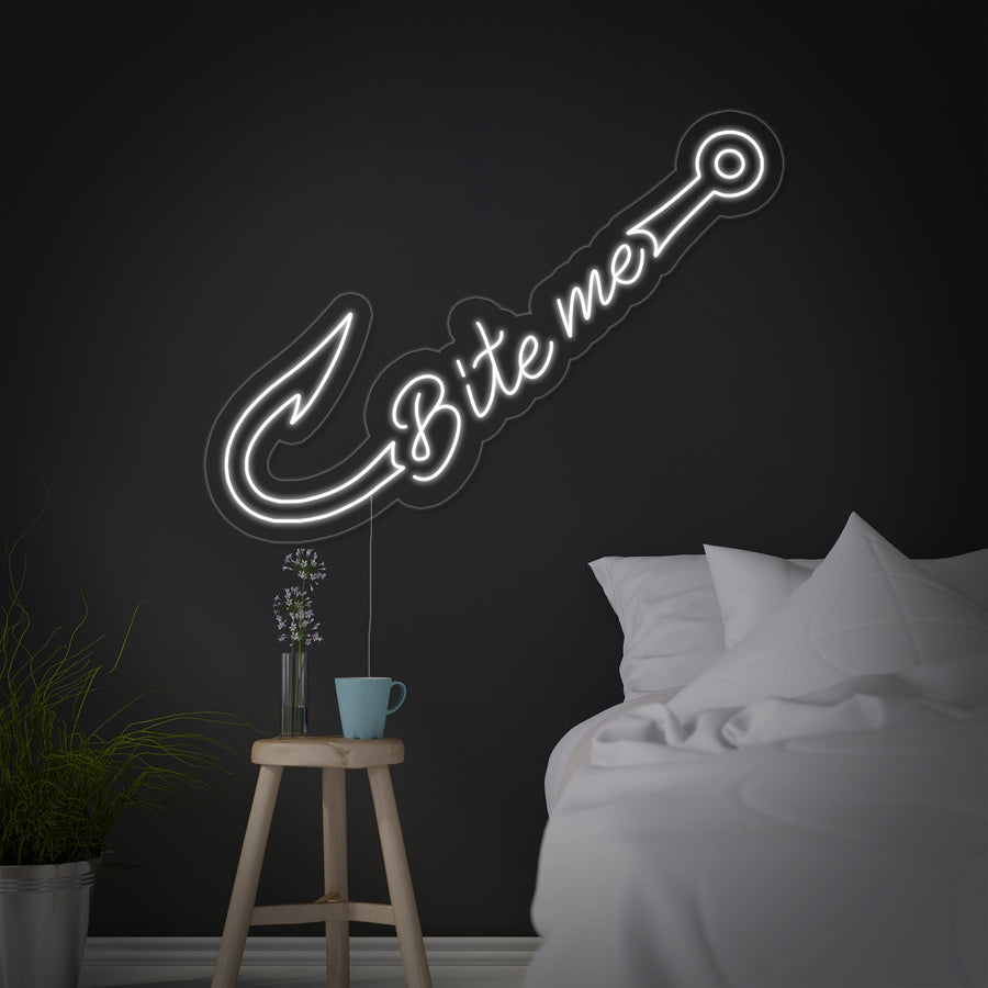 "Kalastuskoukku, Bite Me" Neonkyltti