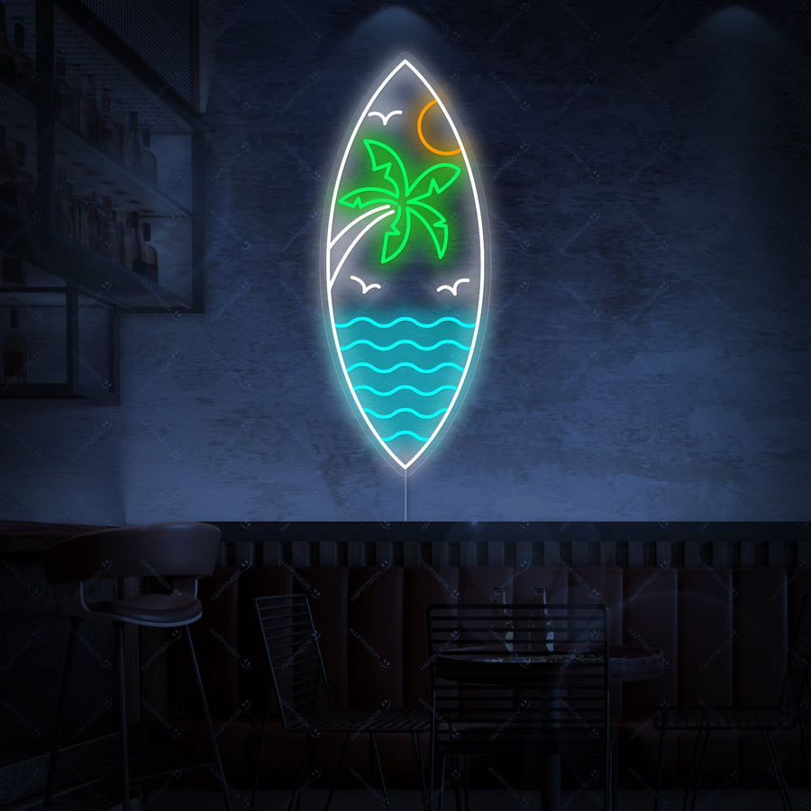 "ranta aallot trooppinen auringonlasku" Neonkyltti